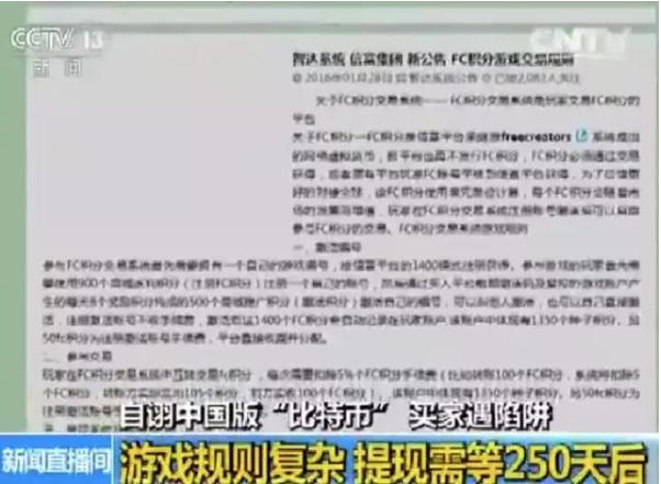 记者看到,目前FC币已经改称FC积分,投资者改称玩家。几位受害人说,他们的虚拟货币被强迫改成虚拟积分了,积分是不能换钱的,只能换成某个未上市公司的股票。受害人说,这些股票都是一些没有上市企业的股票,到底值多少钱也不清楚。
