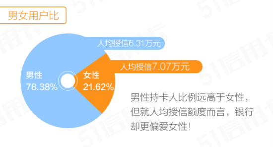 经调查发现,人均持卡量在4张以上的活跃用户以男性为主,但人均授信额度更高的则是女性,达到7.07万元,比男性高12%。