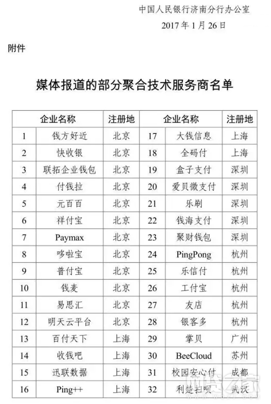 转载请标注:信息网——央行下发清理整顿文件 32家聚合支付公司上榜