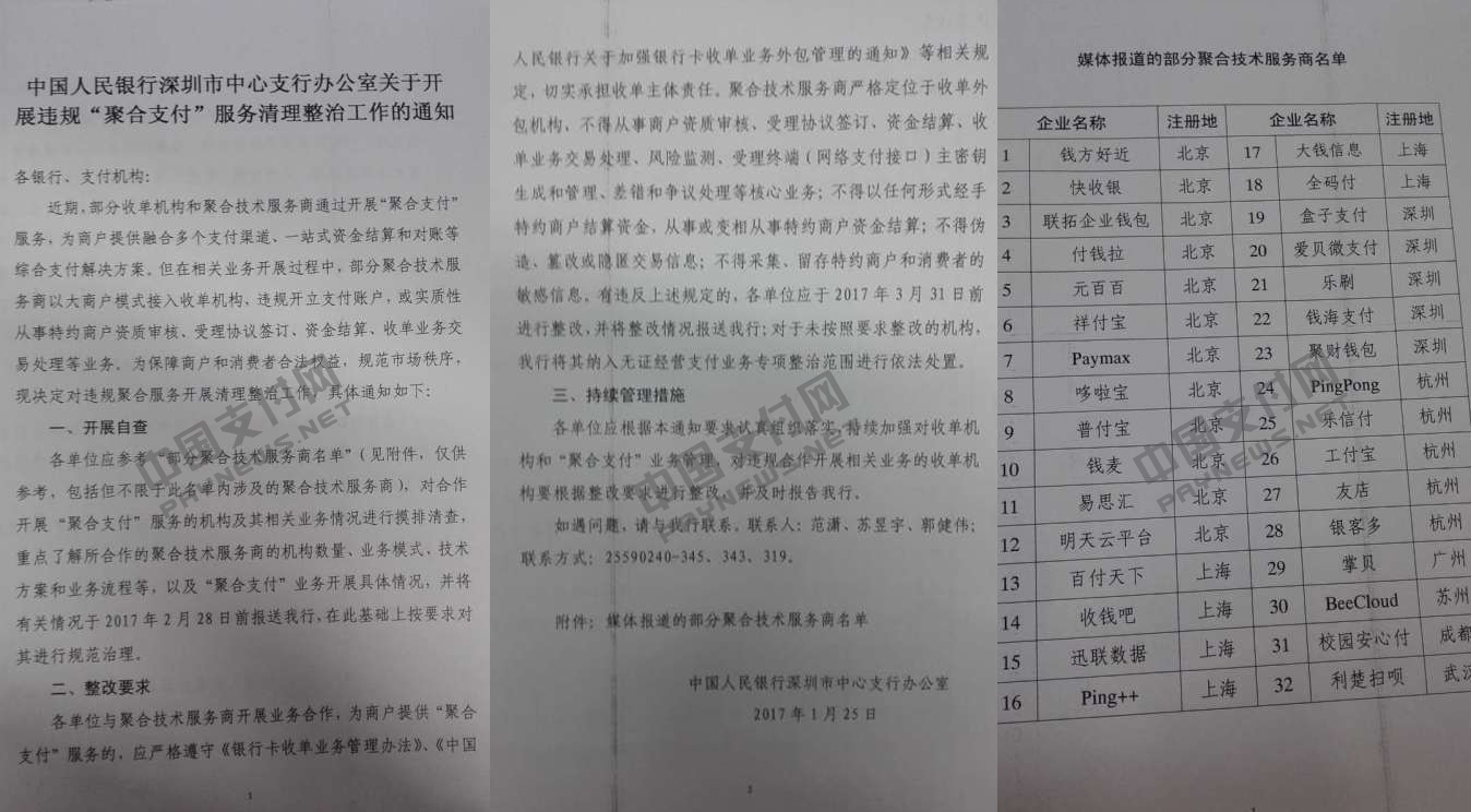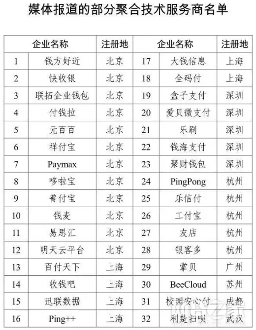 央行下发清理整顿文件 32家聚合支付公司上榜