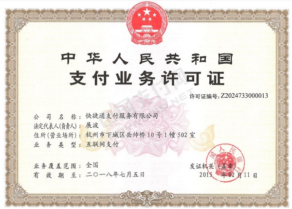 快捷通支付服务有限公司成立于2012年7月11日,曾用名浙江快捷通网络技术有限公司,于2013年7月获得互联网支付牌照。2014年3月被浙江海尔网络科技有限公司100%全资收购成为控股子公司,隶属海尔集团。原股东浙江新华泛信息技术有限公司退出。