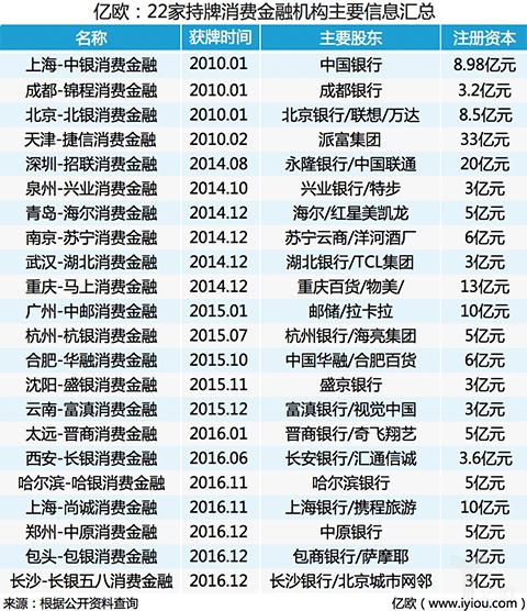 其次,从参与主体来看,消费金融持牌机构的数量和市场化服务企业的数量均有较大幅度增长,尤其是在2016年底,监管层对消费金融经营牌照的发放形成一个小高峰:据统计,2016年11月-12月期间,共有5张消费金融牌照密集获批。自2010年首批4家试点至今,我国消费金融牌照数量已经扩容至22张,除了银行系股东外,民营互联网企业也多有参与,包括联想、万达、特步、红星美凯龙、携程旅游、58同城、苏宁云商、物美、拉卡拉、TCL集团、重庆百货等。