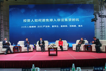 在以“投资人如何避免掉入非法集资的坑”为主题的圆桌会议环节,由江苏省互联网金融协会秘书长、南京财经大学中国区域金融中心首席研究员陆岷峰博士主持,南京财经大学法学院院长董学立、东南大学经济管理学院金融系主任刘晓星、南京瑞泽资本管理有限公司联合创始人严玉帅、江苏典上律师事务所章兵、中国产经新闻报社著名记者赵琳琳等5位专家学者以及企业家各方代表各抒己见,主要为大家分享了在互联网+的时代背景下,非法集资如何搭上互联网的桥梁,改头换面,专家学者以及企业家们一致认为当前的非法集资活动已经进入新的阶段,披上互联网外衣的非法集资活动诱惑性强,破坏力大,不仅危害着人民群众的财产,而且也影响了互联网+的发展战略,社会各级群体必须联合起来共同打击非法集资活动。