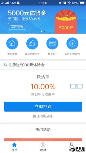 目前平台仅有一种产品——快活宝,年化收益率10%(包含平台补贴5%)。据介绍该产品是活期收益产品,提现时间T+0,100元起购。