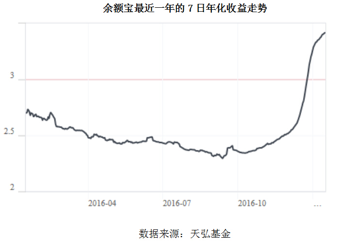目前余额宝收益率超3.4%,理财分析师表示,年底的市场间资金一般都比较紧张,这促成了余额宝收益的持续上涨。