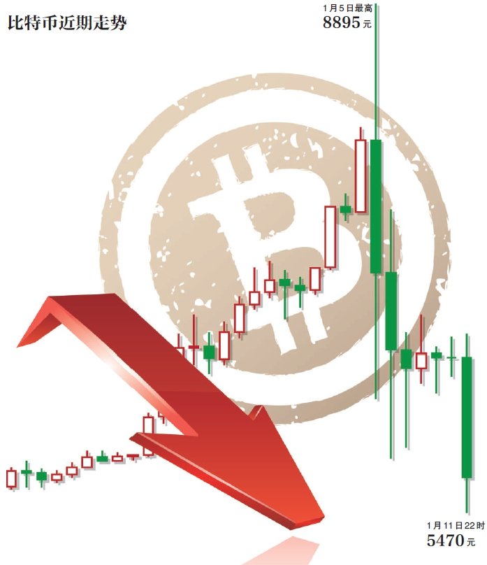 消息一出,比特币应声跳水,截至22时,当天开盘价6290,最低价达到5155元。此前的1月5日,比特币突破历史新高接近9000元后出现闪崩。