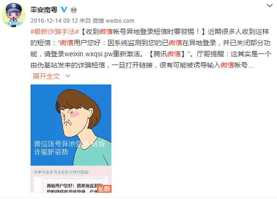 对此,@西安网警巡查执法官方微博表示,微信不会通过短信方式通知账号异常情况,也不会在任何官方通知里放链接。小编隔着屏幕,都能感受到骗子年底冲刺时的拼劲。心疼微信,莫名躺枪…..