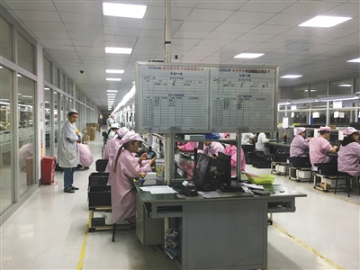 (1月3日中午临近下班,侨兴电子流水线上忙碌的工人。新京报记者陈鹏摄)