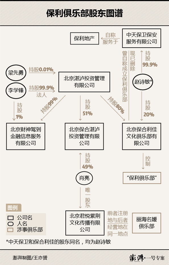 澎湃新闻注意到,保利俱乐部背后的北京湛泸相关公司中也有一个名为“肖亮”的人物,且频频出现。