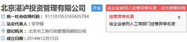 湛泸公司被列入经营异常名录。
