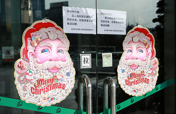 12月26日,北京,保合利佳俱乐部大门内上锁紧闭,门上张贴着停业通知。 东方IC 图