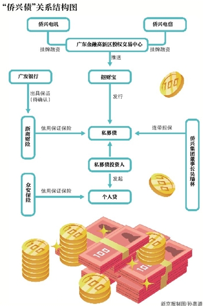 侨兴集团旗下两公司的私募债券到期无法兑付,浙商财险、广发银行、招财宝、众安保险等金融机构和平台陷入其中。