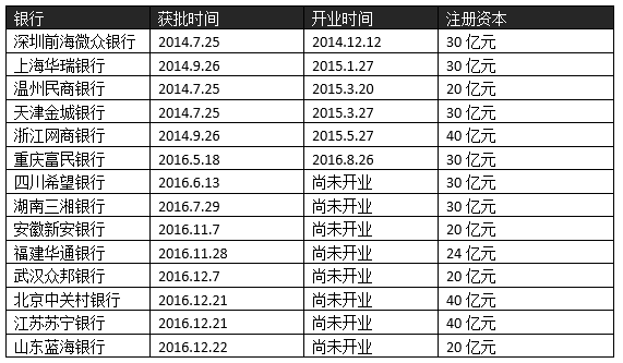 12月6日,虎嗅曾有文章对已经获批的10家民营银行进行了盘点。半个月过去,民营银行总数已经达到14家。在2016年之前民营银行数量也只有5家而已。