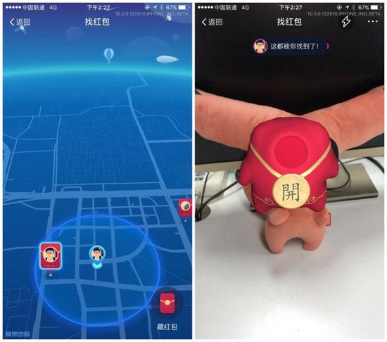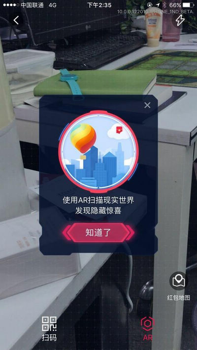4、找红包时,可以看到一张地图,显示用户周边500米的红包。用户到该位置后,需要用摄像头对准藏红包的物体,即可找到红包。