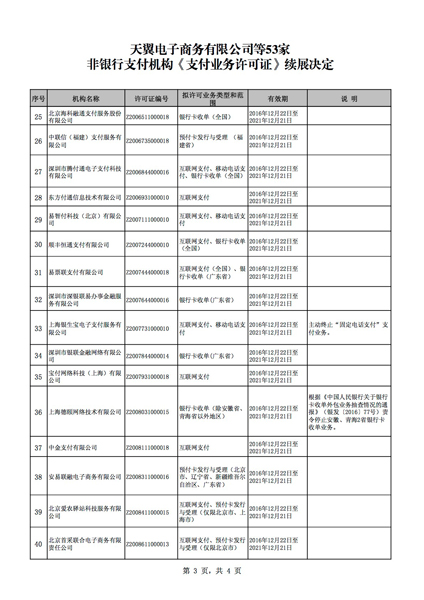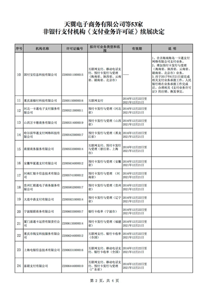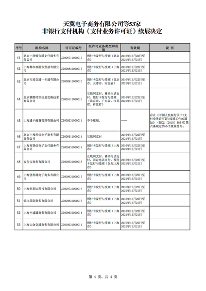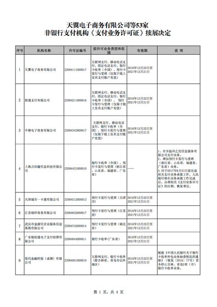 网络整理 2021-03-22 23:2012月20日下午,人民银行发布了第三批53家第三方支付牌照的续展结果,其中1家公司不予续展,2家公司合并。