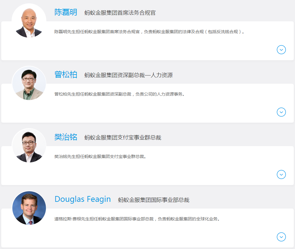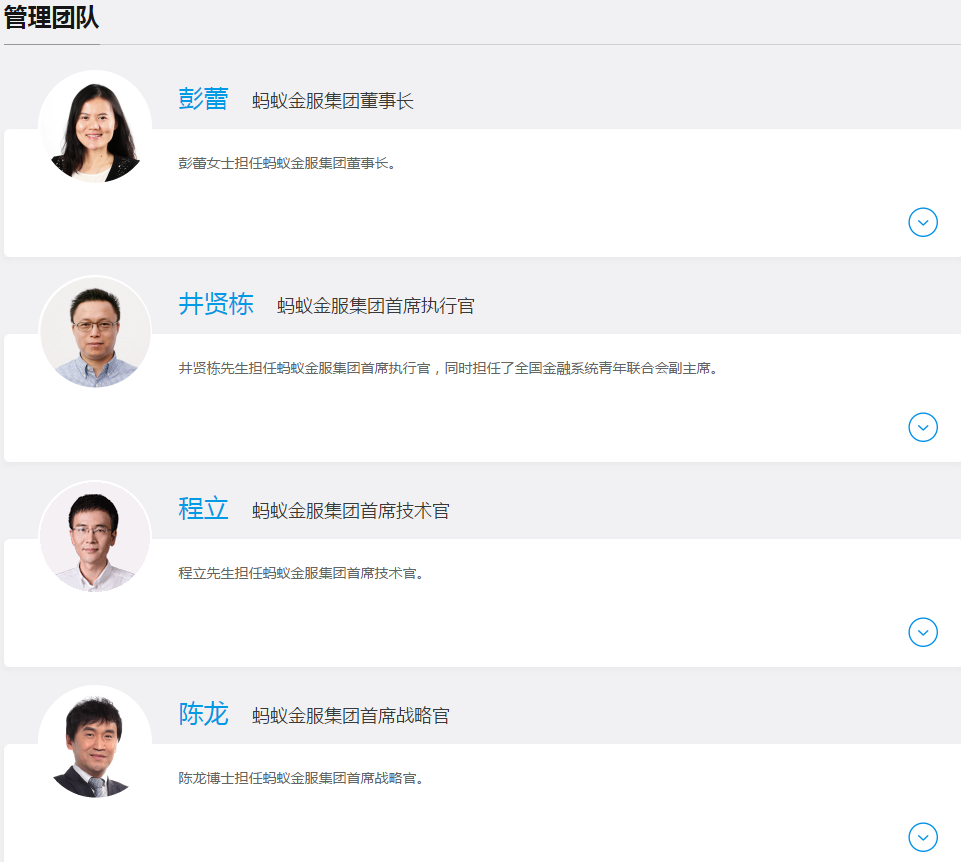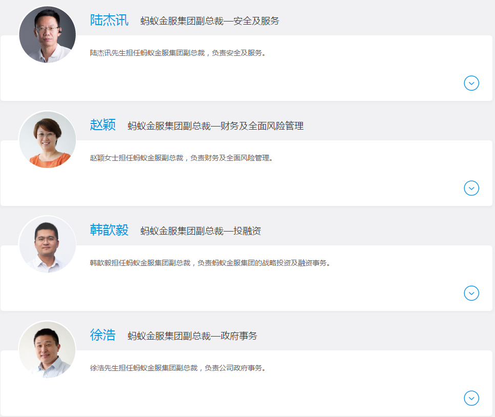 据官网资料显示,蚂蚁金服集团目前管理团队共计17人。
