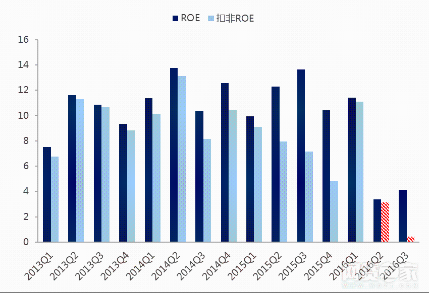 近期,汉鼎宇佑发布三季度业绩报告,今年三个季度合计实现营业收入4.08亿元,同比下降48%;单季度营业利润更是亏损2000万元(净利润为正是因为包含了非公开发行违约保证金转入的4000多万元,属于非经常性损益),其净资产收益率在今年二季度、三季度出现大幅下滑,三季度扣非后的净资产收益率仅为0.42%。