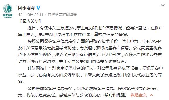 传自有支付平台客户信息外泄 国家电网深夜辟谣