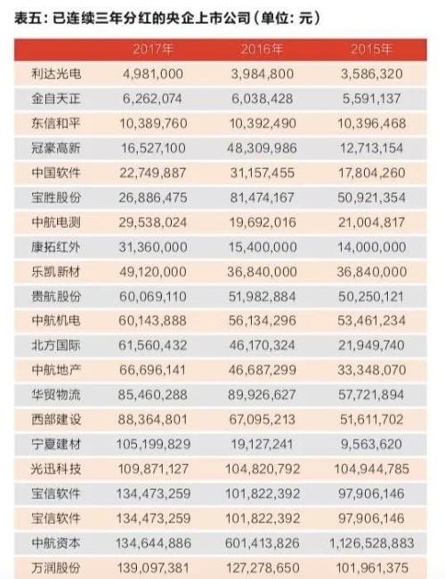 其中也有连续3年盈利而不分红的,比如泰山石油、有研新材、长春一东、中船高科等少数几家。由于多数企业的2017年分红方案尚未完全公布,不排除这些企业在今年稍后分红的可能。